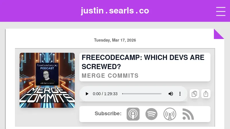 https://justin.searls.co/casts/merge-commits-freecodecamp-which-devs-are-screwed/
