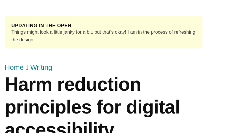 https://ericwbailey.website/published/harm-reduction-principles-for-digital-accessibility-practitioners/