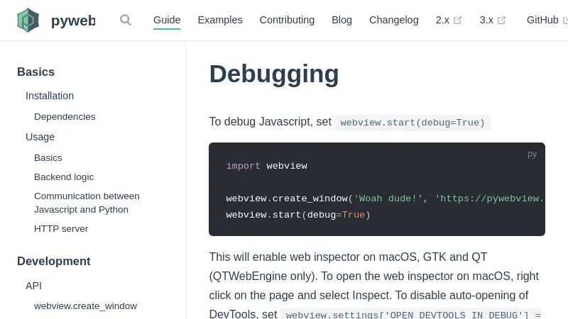 https://pywebview.flowrl.com/guide/debugging.html