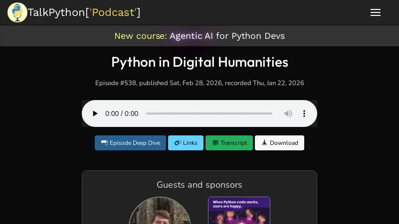 https://talkpython.fm/episodes/show/538/python-in-digital-humanities