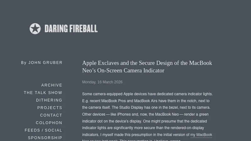 https://daringfireball.net/2026/03/apple_enclaves_neo_camera_indicator